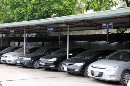 Bãi xe Trinh Hùng - Nội Bài rộng rãi đỗ TRÊN 50 xe ô tô. Toàn bộ có mái che 100%. Xe không lo bị nắng hại xe.