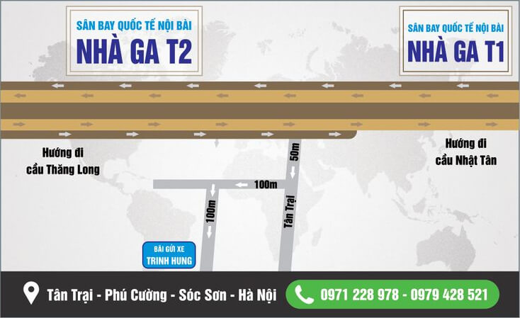 Bãi xe cách sân bay Nội bài chỉ có 200m về phía Nam, thuận tiện cho việc đi lại, tiết kiệm thời gian.